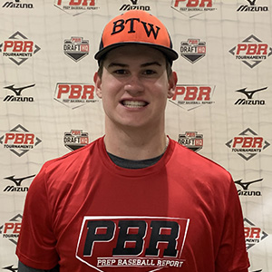 Hit: RHH. Starts with a neutral stance and athletic posture. Hands get set at shoulder height with slight arm bar posture with a relaxed back elbow and 45 degree barrel angle. Strong weight stack onto the back leg. Simple stride to a neutral base with lower half working rotationally through the zone into a firm front leg. Hits with good leverage and hands working inside the ball. Hands work very quickly through the zone and shows good overall bat speed. Level bat path and line drive approach. Hands work rotationally through the zone with a strong top hand finish. Maintains balance throughout the swing.