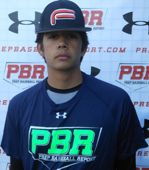 A physically advanced 6-foot-2, 183-pound frame with some strength throughout. The right-handed hitter bats from a wide, up-right stance with some rhythm in his hands. Uses a small reverse toe-tap and arm-bar load followed by a slight leg kick, uphill path with some pop. In BP, shows a pull approach with lift, some barrels, 86 mph exit velo. Runs a 7.68 60. Defensively, shows clean and confident actions, big crow hop, loose arm, high-3/4 slot, 74 mph with carry and accuracy. In the game, went 0-for-2.