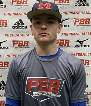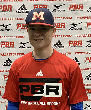 Displayed a compact 5-foot-10, 170-pound frame with some strength in his actions. The right-handed hitter begins with a wide, balanced stance utilizing a knee-knock stride to initiate his swing. Hands worked well through the ball, getting to extension consistently. Generated a solid 81 mph bat-exit velocity off the tee with a gap to gap approach. The primary backstop showed a low setup with average receiving skills with some glove movement at the catch point. Pop times ranged from 2.16-2.28 on accurate throws of 72 mph from the crouch out of a high ¾ arm-slot. Demonstrated adequate blocking technique with a low center of gravity and ability to create soft walls on both sides of the plate.