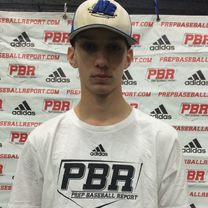 6-foot-2, 145-pound right-handed hitting corner infielder and pitcher. On the mound, the fastball touched 76 mph with a downhill plane to it. The spin pitch has a chance to be real good, sits 66-67 now but the shape is appropriate. Pitches out of a plus ¾ slot, the frame is wiry and the arm works freely. Slight forward lean as he makes his way into foot strike. He has a minimal head lean as he gets off his tracking to the plate. Finishes well at release. Defensively, threw 71 mph across the infield with accuracy. The footwork to and through the ball need to improve as he matures. Ran a 4.9 down the line on his dig to first base. The bat has a tee exit velocity of 81 mph. The set up is wide with the feet. The bat path is out and around to get to contact, he needs initiate a better path to contact. Physical strength will aid development as he matures. I like on the mound.
