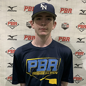 Owen Hall: 3B/RHP, (2024) Edmond North, OK. 5-foot-10, 145-pound lean frame. In the box, Hall clocked an exit velocity of 76 mph. Began in an athletic stance with a smooth load, then used a controlled stride to initiate his swing. Has quick bat speed, simple swing plane and high finish. Found some barrels with a lot of loud contact. Up the middle approach. Above average in the infield, his best throw was registered at 76 mph; had consistent footwork, firm hands and a clean exchange. Had a long arm action with a high ¾ slot. Clocked a time of 8.13 in the 60-yard dash. Projectable on the mound, where he showed good arm speed, he had a long arm action with a high ¾ arm angle. Drop-and-drive type pitcher who uses easy effort. He has even shoulders with athletic balance point. Lands closed with a falling off finish. Produced a fastball that came in at 76-78 mph and topped out at 78 mph; shows arm side control and running action. Shows control around the zone and some action on his slider (60-61). changeup (66-69) showed consistent accuracy.