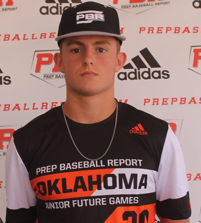 A 5-foot-11, 200-pound mature build who hits from the left side. Roberson showed great rhythm pace in the box driving balls up the middle.Does a great job of staying behind the baseball. He’s got a chance to hit for power with a slight uphill swing that stays in the zone for a long time.His 90 mph exit was tied for 2nd on the day. Defensively, he showed off some quiet receiving skills. On throws down,Roberson was efficient with his footwork and made consistent exchanges. His best pop time on the day was a 1.97 at 77mph. The recent Oklahoma commit is currently the #7 ranked player in OK for 2022.