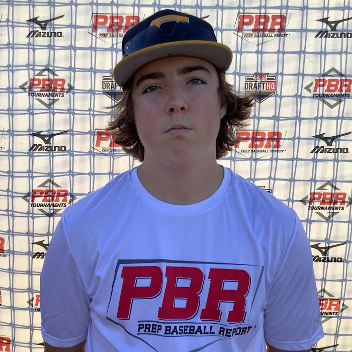 Hit: RHH. Hands set just below shoulder height with a vertical barrel angle. Slightly open stance with an athletic posture. Strong load into teh lower half with a very linear direction into a firm front leg. Slight uphill bat path with a strong top hand finish. Hands work quickly through the zone and shows some strength at contact. Pull side approach and stays behind the ball at contact well. 71.8 mph bat speed with 15 G's of rotational acceleration.