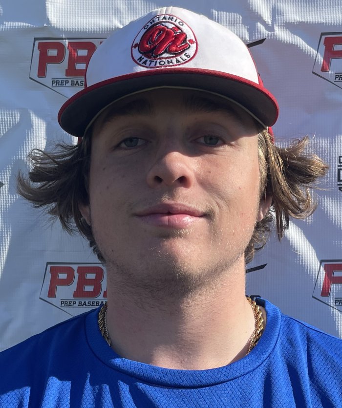 Aidan George of the Ontario Nationals was another 2025 to show well on Sunday with his size, physicality and swing. The 6-foot, 180-pound 3B/OF has some current strength from the left side with bat speed and quick hands through the zone. The swing worked up the middle with a level swing, producing a lot of line drives with an exit velocity of 88 mph. We know the bat can play so we’re interested to see the rest of his game this summer.