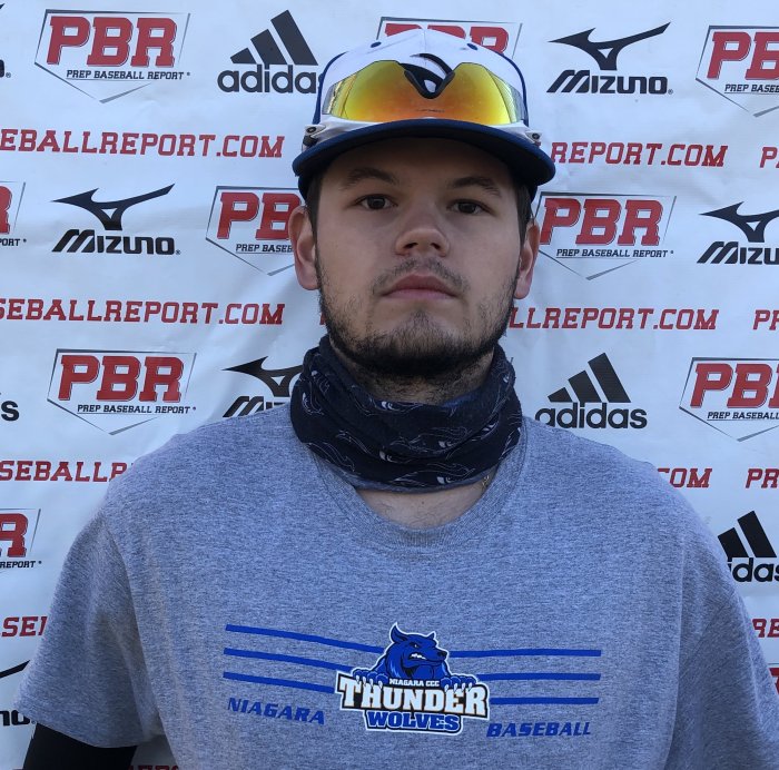6-foot-5 first baseman, ran abest 60 time of 7.54. Left-handed bat, sets up evenly spread in lower half, hands work back with load and aggressive in the zone with some bat speed, will cut off swing at times and lack extension through contact, strong with some barrel whip through the zone. Defends well at first, big target whow went down and picked some balls in the dirt, arm has looseness and whip to it, 80 mph across diamond, still think there is a chance to see him on the mound in the future with his size and arm actions.
