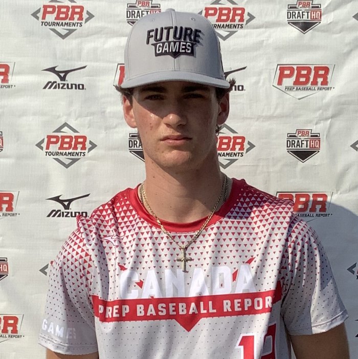 Matteo Pare, a 2023 right-hander from the Windsor Selects, was efficient and effective during his 2.2 innings of work. He worked 85-87 with his fastball which had a ton of swing and miss, while mixing in a slider at 74-75 which he was able to throw for strikes or use as a strikeout pitch out of the zone. Pare fills up the zone and controls his body well on the mound, standing at 6-foot-4, 190-pounds. There’s lots to like from Pare and with the pitchability already there, it will be exciting to see how his stuff progresses over the next couple years.