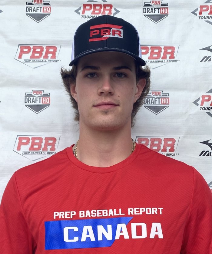 6-foot-2, 165-pounds, two-way guy for u17 Oshawa elite. Projectable frame, tall and long, present athleticism. On the mound, he worked 80-82, T83, extension out front, worked downhill, allowing his fastball to play up. Current feel for a curveball with 12/6 shape and depth—high ceiling on the mound. Also showed well on the position player side, bat works with some looseness with an 82 exit velocity. Was 78 in the infield, and the frame plays at a corner.