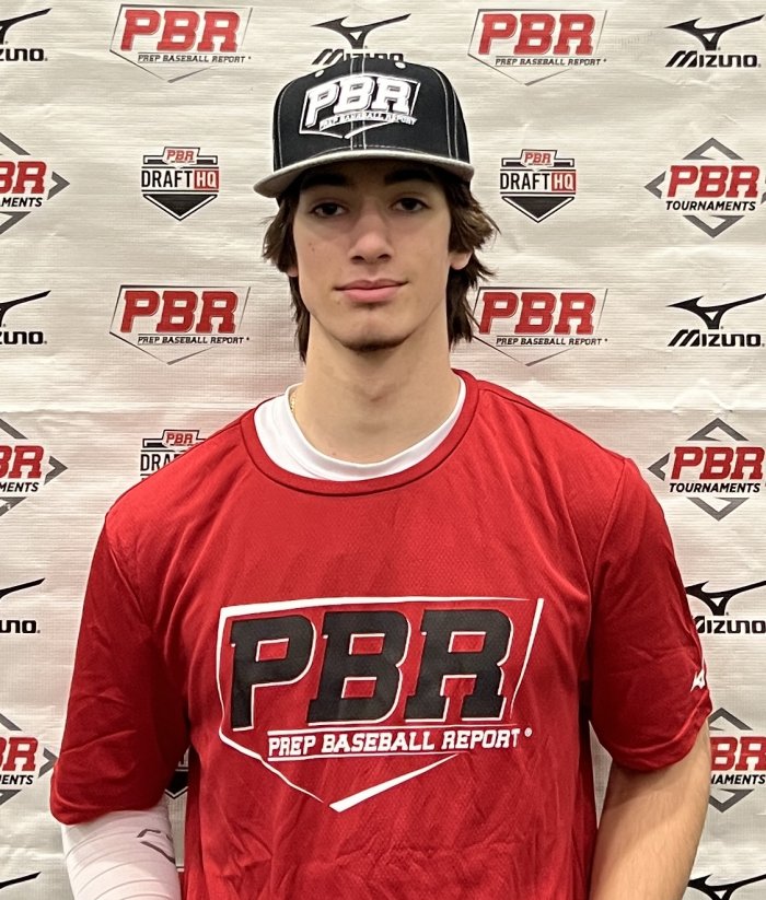 Physical: Lean / wiry 6-foot, 150-pound frame with projectability in the build / athleticism sprinkled throughout the movements. 7.36 runner in the 60-yard dash. Offensively: RHH. Balanced, even stance with the hands starting low at the ribs with minimal rhythm pre-load. Utilized a move upwards to the shoulder coupled with a leg-lift stride to initiate a quick, flat barrel path into the hitting zone. Hit into a stiff front side and allowed the hands to match the pitch plane consistently with an adjustable lower half. Stayed behind the ball well in the posture with high level bat to ball skills in the box, feel for driving the top hand through the baseball at impact. Recorded a peak bat-exit velocity of 79 mph according to Trackman Baseball while spraying hard contact gap to gap during batting practice. Defensively: The primary outfielder featured active footwork getting downhill through the ball on occasion at the fielding window, medium-low posture while fielding off of the left side of his body on the approach, smooth transfers to the middle of the body, accurate high ¾ arm-slot towards the target, could range and go get the ball in the gap with solid footspeed. OF - 77 mph Pitching: RHP - Started from the left side of the rubber with a short side rocker step, above average pace to the delivery with a medium leg lift at the top of the stack, drives out towards the plate through the backside and landed closed creating crossfire at release out of a high ¾ arm-slot. FB ranged from 75-77 T78 mph with an upwards of 2100 spin per Trackman Baseball with natural arm side run. Mixed in a 60-63 mph breaker with 11/5 plane and 1989 maximum rpms of spin.