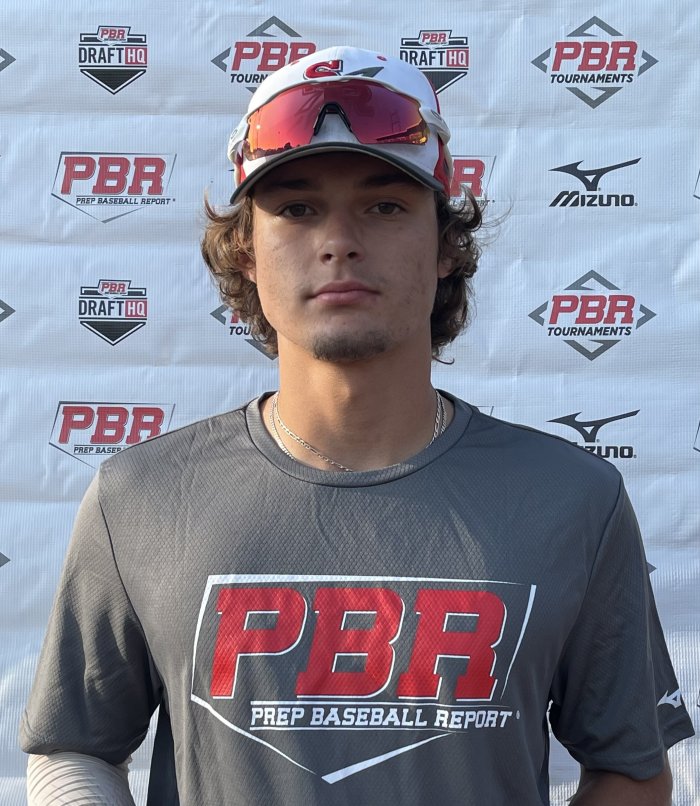 Offensively: RHH. One of the offensive winners of the event, the righty starts calm and even in the stance, as the hands operate with loose rhythm at the shoulder. Utilized a short leg-lift stride and plenty of burst through a flat path into the hitting zone. Delivered a home run and double during game action, following up an efficient round that saw him go T94 mph bat-exit velocity at 351 feet. Legitimate pull-side juice and projects to handle middle of the order role.