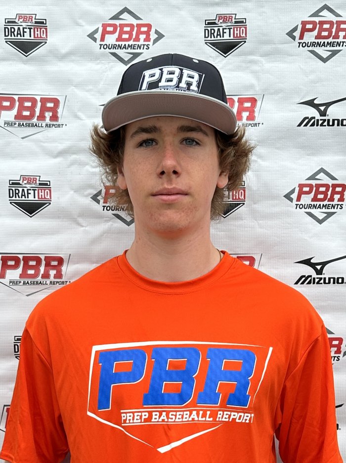 Offensively: RHH. Narrow, upright stance, as the hands start just outside the shoulder. Utilized a leg-lift stride to initiate the swing through a flat, slightly uphill path into the hitting zone with separation present. Stayed on the rear-hip during the turn, getting the arms out over the plate for a pull-side approach. Recorded a T84 mph exit velocity, which will continue trending higher as he fills out.