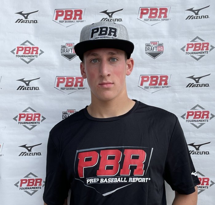 Offensively: RHH. Slightly open, narrow stance, as the hands operated calm and loose at the shoulder. Utilized a short lift and replace stride to initiate the swing through a flat path towards a lifted finish after impact. Able to maintain direction at the plate and recorded T88 mph bat-exit velocity (85 mph AVG), finding a home in the pull-side gap for extra-bases. Carried mature approach over to game action.