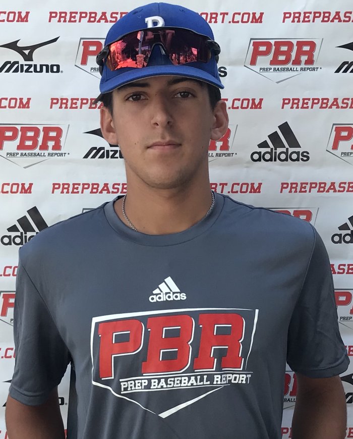 Offensively: RHH. Neutral set up with back hip loaded from the start; simple weight shift with a lot of hand movement as pitch is coming. Drifted into contact, blocked weight transfer with the front leg well with hands stay tight to his body for a quick barrel. Strong line drives back up the middle and to the opposite field, rolled over on pull side hits; peak Trackman exit velocity of 85 MPH.