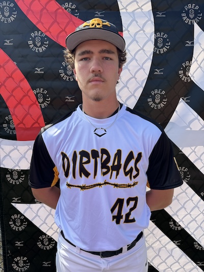 Offensively: RHH. Even setup, with feet just outside his shoulders; upright bat position. Loads straight back with an up and down stride for timing. Stays behind the ball while showing a strong lower half. Showed a direct swing path with a two handed finish. More line drives than flyballs and groundballs with a peak exit velocity of 96 MPH via Trackman. Showed easy, consistent power.