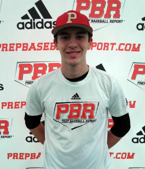 5-foot-11, 155-pound backstop showcased pop times of 2.24-2.31 on throws of 66 mph from the crouch. Stays directional with a short arm swing, but footwork will need to be cleaned up. Right-handed hitter starts from a square stance and initiates his swing with a lift-and-replace stride. Displayed a solid fee for the barrel with a line drive approach resulting in a bat exit velocity of 73 mph. Showcased good feet running a 7.19 60-yard dash. Overall game will benefit from strength gains through physical maturity.
