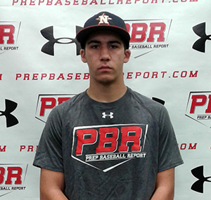 7/20/16 5-foot-9, 155-pound right-handed hitter starts from a wide square stance with a high-hands load and initiates his swing with a heel raise stride. Displayed a line-drive approach with a feel for the barrel during batting practice. Showcased solid feel for the baseball in game action going 3-for-5 with a triple and a walk over two games with a bat exit velocity of 88 mph. Flashed fluid actions defensively with solid feet and the ability to make the slow-roller play look easy. Showed accurate 81 mph arm strength with the ability to make throws from multiple arm angles.
