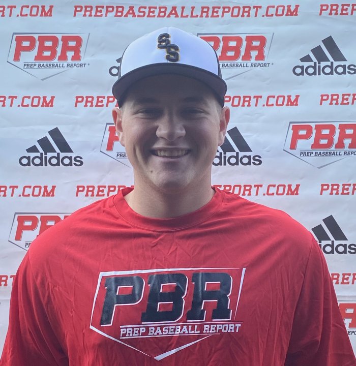 Offensively: LHH. Crouched, wide open stance with the hands starting just above the shoulder in the setup. Utilized a leg kick stride to initiate an upper half oriented, flat barrel path through the hitting zone. Transferred the weight into a stiff front side at impact throwing a strong top hand through the baseball. Showcased present sink into the lower half allowing the hands to get the barrel turned around early and often while generating natural loft to the pull-side during batting practice. Displayed lots of ground power in the box and rotational power with the ability to leave the yard to the LCF gap/LF side when catching the baseball out in front. 14.3% line drive rate and 57% fly ball rate per Trackman Baseball / recorded a peak bat-exit velocity of 91 mph / 341 foot max batted ball distance.