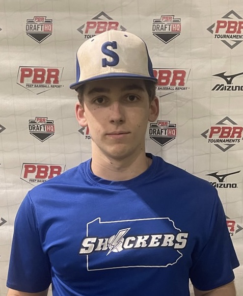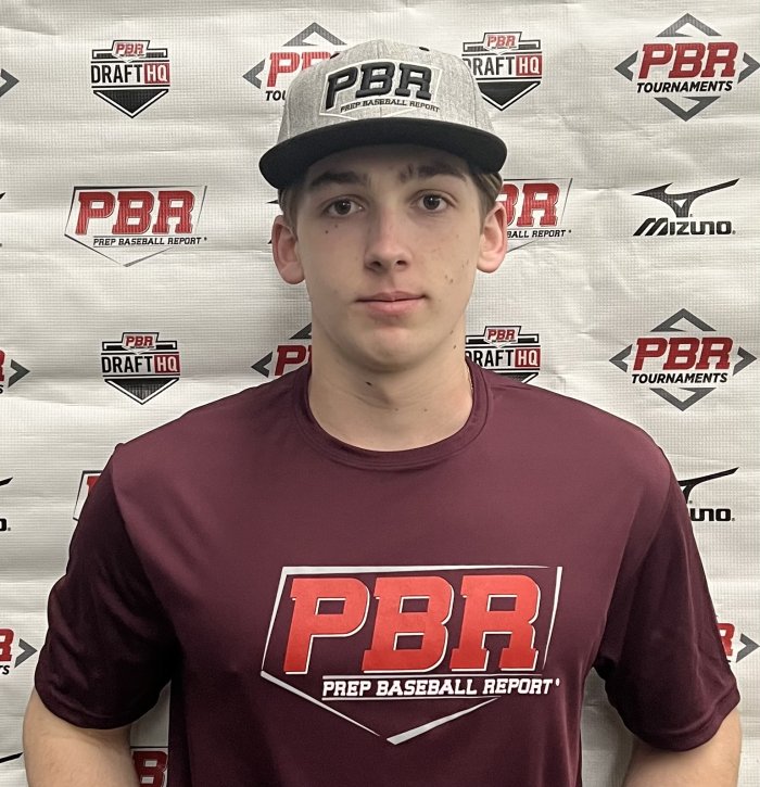 Offensively: LHH. Simple, even stance from a taller posture, setting the hands lower at the trigger. Utilized a toe-tap stride with some weight-shift evident, delivering a line drive approach from gap to gap on the sweet spot. Showcased barrel whip when timed up, able to add to an already solid 88 mph bat-exit velocity as he matures. In-game success too.