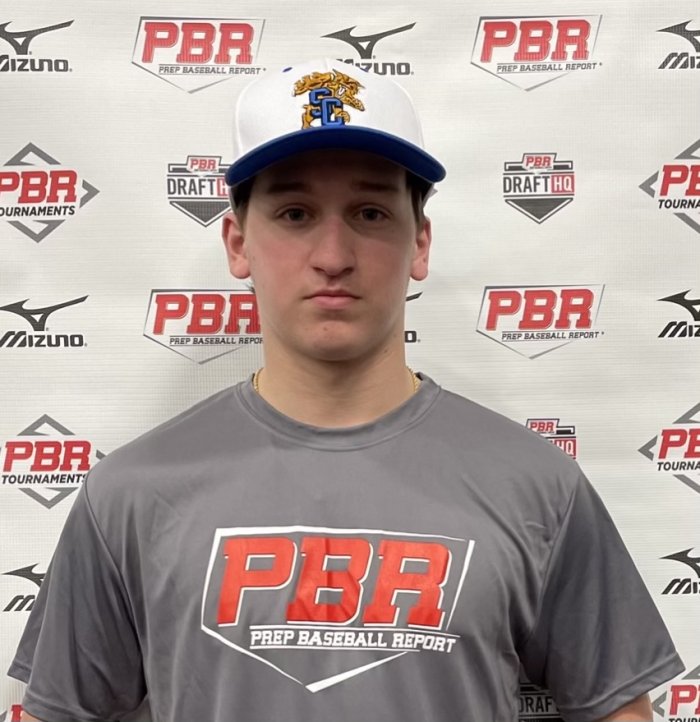 Offensively: RHH - Upright, open stance with the hands starting with rhythm by the ear. Utilized a barrel tip at the top of the load coupled with a toe tap stride allowing for increased timing at the front of the plate. Recorded an impressive 80% line drive rate per Trackman Baseball with a middle of the field approach; was up to a 288 foot max batted ball distance. An 88 mph bat-exit velocity gives confidence that doubles power can hold up in game action, giving him some relevance towards the top of the order.
