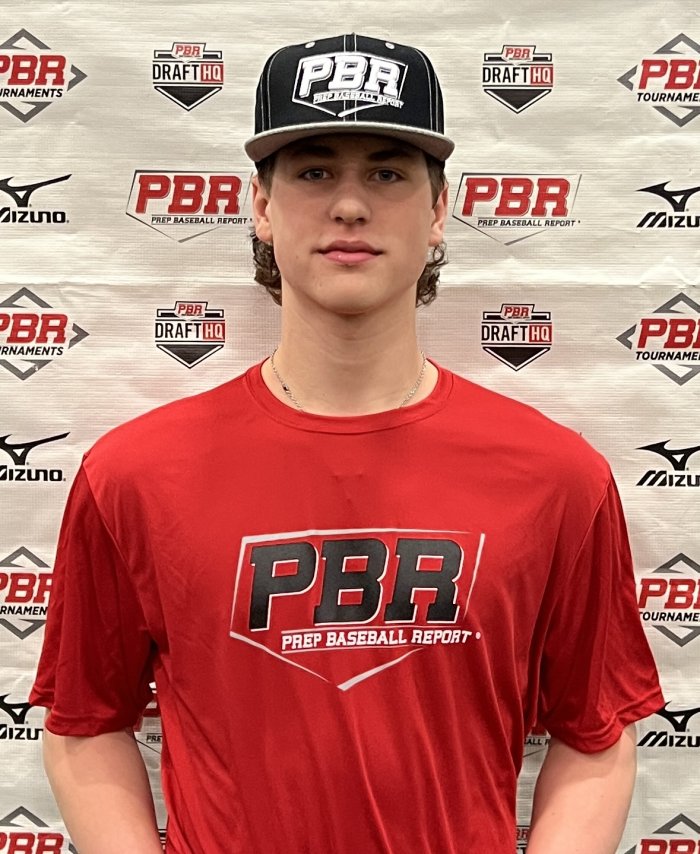 Offensively: RHH. Starts with an exaggeratedly open front side and highly slotted elbows as the barrel lays fully behind his back. Toe-tap stride initiates a big time barrel tilt as the body starts to close off into a strong launch position.Fairly direct path from above the back shoulder at launch. Moving parts along with 24MPH hand speed assist with acceleration of bat head into the hitting zone.