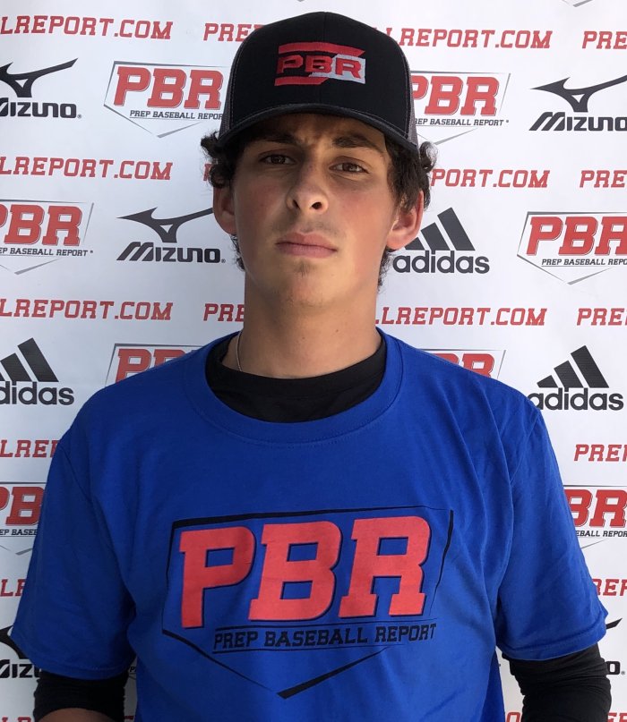 5-foot-10, 156-pound right-handed hitter starts from a slightly open stance and utilizes a lift-and-replace stride to begin. Showcased a short swing path with a gap-to-gap approach and a solid feel for the barrel. Registered a bat exit velocity of 82 mph and ran a 7.45 60-yard dash. Flashed quiet receiving skills behind the dish with a clean transition and pop times of 2.15-2.22 on throws of 74 mph from the crouch.