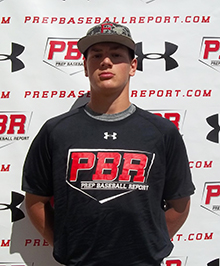 8/9/15 6-foot-0, 180 pounds with an average, athletic build. On the mound, the right handed pitcher uses short, whippy arm action while throwing through a 3/4 slot. Fastball showed life while sitting between 84-87 mph. His 11/5 breaking ball showed some good depth at 73-75 mph. Also mixes in a 77-78 mph changeup. Ran a 4.9 home to first time. At short, the best tool is his arm as he topped out at 82 mph. Quickness in release as he shows the ability to use a near sidearm slot. At the plate, the right handed hitter offers a short, compact swing. Clearly displays his ability to spray linedrives all over the field. Topped out with an 86 mph exit velocity.