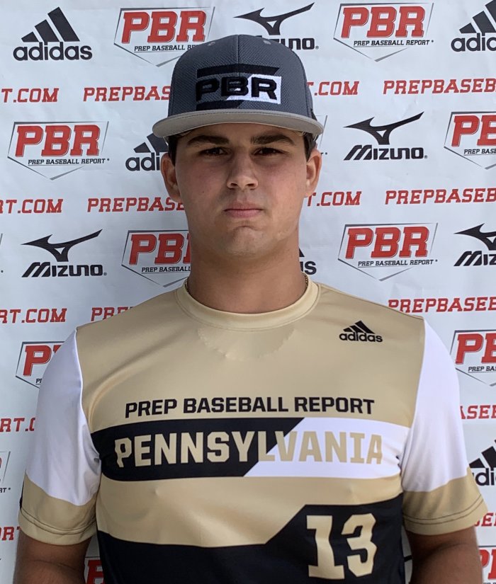 6-foot, 185-pound right-handed hitter has added 30 pounds to his frame over the past year. He begins his swing from a square stance and attacks the baseball with a purpose using a leg-hang stride. Showed present power with an ability to create backspin. Registered a bat exit velocity of 87 mph and ran a 7.33 60-yard dash. Played through the baseball routinely and showcased advanced 89 mph arm strength from the outfield. The righty sat 83-85 on the mound from a high 3/4 arm slot with some hip coil to his delivery. His curveball at 69-74 showed 11/5 rotation and two-plane break at times. Also showcased a stiff changeup at 77-82 that he had difficulty commanding on this date.