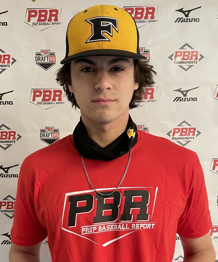 6-foot-2, 175-pounder already looks the part of an upperclassman. The right-handed hitter starts from a square stance and initiates his hands from a deep load position with a lift-and-replace stride. A flat path through the hitting zone and hands that work well through contact allow him to be on time with regularity. Registered an event best 88 mph bat exit velocity and ran a 7.26 60-yard dash. Showcased fluid actions defensively with active feet and played through the baseball routinely with 81 mph arm strength. The two-way prospect also sat 79-81 on the mound with an easy, repeatable delivery. High 3/4 arm slot is short in back and long out front. Fastball showed arm-side run as did his changeup at 73-74. Curveball is an above average pitch with two-plane 11/5 break at 69-73.