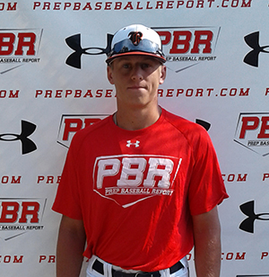 7/20/16 6-foot-1, 190-pound right-handed hitter only participated on day one due to college visits scheduled for the final day of the event. Starts from a slightly open stance and initiates his swing from a deep load position with a short lift-and-replace stride. Creates solid barrel whip (88 mph bat exit velocity) with a strong lower half turn and his hands work well through contact, especially to the pull side.