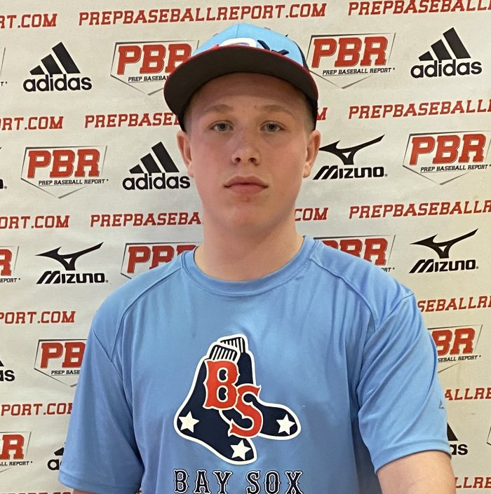 Aiden Cherniawski: RHP/3B, (2024) St. Raphael Academy, RI. 5-foot-11, 205-pound solid strong frame. Solid at the plate, the right-handed hitter had an exit velocity of 83 mph. Began in an athletic quiet stance with a rhythmic load, then used a short stride. Bat speed is quick, displays a short simple swing plane and a front foot level finish. He barreled up some balls with loud contact. Line drive up the middle approach. Above average in the infield, his best throw was registered at 74 mph; has soft hands, athletic smooth feet, and a clean natural exchange. Laterally, movements were athletic and fielded the ball out front. Used a ¾ slot and a short arm action while showing consistent accuracy to the base. Clocked a 60 time of 7.77 at the event. Above average on the mound, showed quick arm speed, also used a ¾ arm angle with a loose clean arm action. Tall-and-fall up-tempo type pitcher and shows easy effort. In line shoulders with an strong balance point. Lands square with an athletic balanced finish. Threw his fastball 78-80 mph; has a heavy fastball that shows both sides of the plate control and sinking action. Showed arm side control and fading swing and miss action on his changeup (70-71). His 2/8 slider (67-70) has tight late action and down in the zone command. Love the tempo and fell off the mound.