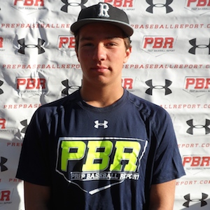 6-foot, 185-pound right-handed hitting catcher and third baseman. Threw 76 mph from behind the dish with long arm action. The feet work but the arm needs to be shortened down on the backside to improve his chances of staying back there. Pop time of 2.0. The receiving is getting better, as he secures the catch and blocks appropriately. At third, showed a solid glove, throwing 80 mph across the diamond with accuracy. Ran a 4.47 down the line on his dig to first base. Tee exit velocity of 86 mph. Sets up with a wide base and has an idea of trying to stay inside the ball at contact. There is length to the swing but he gets the barrel there and the hands work well at the dish.