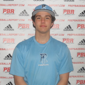 6-foot-185-pound, strong, thick, athletic frame. A well proportioned athlete, the hands and wrists have above average strength to them. One of the better players around, is a right-handed hitting catcher, with ability to play third base as well. The stance is balanced throughout, feet are wider than shoulder width, slightly open, the hands are loose set right at shoulder height. For timing uses a minimal stride, more of a buckle with front knee. The swing path is level through the zone, finishes at shoulder height with two hands. The swing is short, direct to the baseball, approach is gap to gap, with one line drive after another. The tee exit velocity was clocked at 89 mph, ball jumps off the bat. The sixty-yard dash was clocked at 7.15, runs well for a catcher. Behind the plate, setup is balanced, feet slightly wider, the hands and feet work well together, the transfer is quick and in line. The arm works out of a higher slot, it's clean, with good strength from the chute, clocked at 75 mph. The pop times were 1.96-2.16. The hands are strong when receiving, receives the low pitch well. At third base, prep steps are good, gets around the baseball with momentum moving towards his target. The arm action is short and clean, clocked at 74 mph, plenty of strength with touch across the diamond. Projects for me as more of a catcher, receiving interests from division one schools from the northeast.