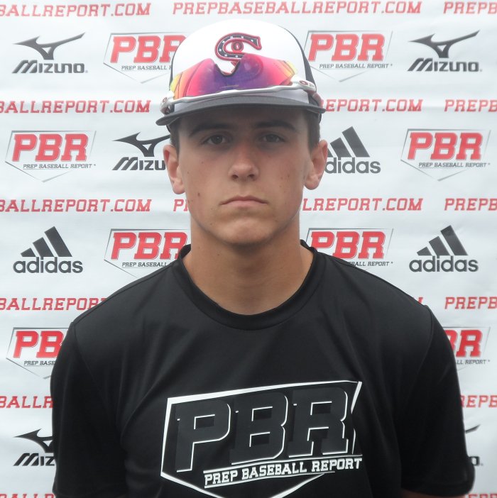 5-foot-9, 160-pound, strong, smaller, athletic frame for his age. A right-handed hitting catcher who had a great workout on scout day. At the plate, hands are strong and loose and gets to the baseball extremely quickly. The stance is taller, slightly open, gains ground with stride foot, weight stays back and transfers it under control. The swing is short to the baseball and level through the zone, across his chest. The approach is more middle to pull, with spraying one line drive after another. The hands and wrists are extremely strong for his age, the tee exit velocity was clocked at 78 mph and ran a 7.46 mph. Behind the plate, setup is extremely low to the ground, is flexible and looks to be a comfortable target to throw to. The hands are strong and soft and gets underneath the low pitch, is quick to the block and can scramble back to his feet quickly. During the transfer, right foot replaces the left foot, glove gets to throwing hand. The arm action is short, throws from a higher slot near his ear, arm was clocked at 71 mph, throws were on or close to the bag. The pop time was very good for his age at 1.96- 2.18. Big follow, looks to have serious game to him, need to see him.
