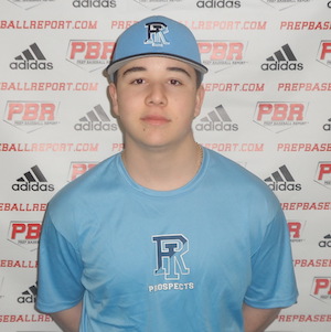 5-foot-8, 170-pound, thick, durable strong catchers athletic frame. The hands and wrists have above average strength to them. A left-handed hitting catcher, the top tool is his bat. At the plate, the stance is balanced throughout, feet are slightly wider than shoulder width, front foot is slightly open. The hands are super loose, start at the shoulders, bat has some tilt to it. For timing uses more of a knee to knee, stride is under control, gains ground, transfers the weight from the backside to the front. The swing is fluid and works with ease, path is level to up, with high one-handed finish. The approach is from gap to gap, drives the baseball with authority, shows to have above average power for his age. The tee exit velocity was clocked at 85 mph. Defensively, setup is very relaxed and athletic behind the plate, hands are soft on the catch, gets low and around the baseball. The feet are quick in the transfer, right foot gains ground, closes down the front side. The arm shows to have good strength for his age, clocked at 72 mph, works out of a high ¾ slot. Throws were on the bag, had a pop time of 2.06. At third base, arm was clocked at 73 mph, hands are soft, works from the ground up. The double play starts to the glove side were smooth. Projects for me as a catcher, look for big things from this one.
