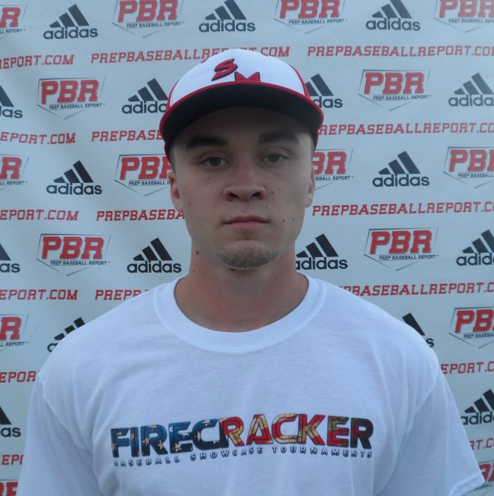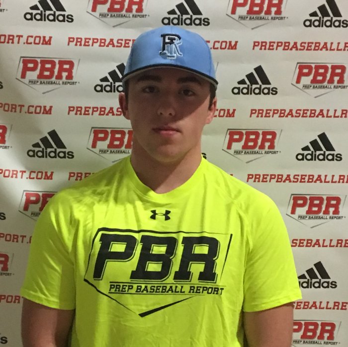 5-foot-10, 187-pound, strong, thick, durable pitchers frame. The frame is well proportioned, lower half is strong and the back is wide. A right-handed pitcher, who pounds the zone with three pitches. The delivery is simple, is balanced throughout, repeats it for the most part. The hands start low, work up with his controlled, high leg raise. The separation is on time, front shoulder is strong and stays in line with target. The lead leg has length to the stride, gets squared up to the plate on release. The back side post leg, wants to collapse, loses some power and juice, needs to stay taller throughout. The arm action is longer on the back side, works out of a higher ¾ slot. The fastball was clocked at 74-77 mph, with good action to the arm side. Pounded the fastball to both sides of the plate. Pitched previously to this event, fastball was a tick or two higher, look for the velocity to climb as he physically matures and gets stronger. The breaking ball showed good downward break, clocked at 63-65 mph, thrown for strikes and attacks with it. The changeup had cut action to it, clocked at 68 mph, was located down in the zone. Times to the plate were at 1.28. Good looking young arm, look for the velocity to jump, competes at a very high level.