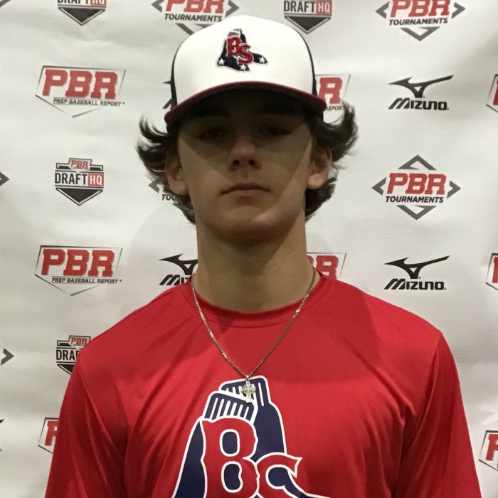 5-foot-10, 165-pound, average athletic frame with room for added weight gains. Frame and body work well together, smooth movements. A right-handed hitting two-way player, showed well at the event in all parts. At the plate, a spread out approach, feet even, hands are relaxed. Small pick up and put down with stride foot, good backside drive. The swing is short to contact, gets extension through it, hands are inside the baseball, a level path. The approach is to all fields, had an exit velocity of 79 mph. A plus runner, ran a4.09 down the line. Defensively, arm is clean, good actions to both sides, with a soft glove. Quick transfer, feet move throughout. The backhand was soft and turned it from both sides. The arm was clocked at 78 mph, with more in there as he adds strength. Off the mound, simple repeatable delivery, arm working from a high 3/4 slot. Inline direction, minimal pull with lead arm. Small collapse on backside, could stay taller. Pounded zone with a 78 mph fastball, both secondary pitches thrown for strikes. Projects out more as a position player for me.