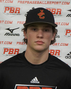 5-foot-10, 160-pound athletic frame; LHP/OF. Started in an athletic stance with a smooth load, then used a small leg kick just before his swing. Displayed a straight-to-the-ball swing plane and quick bat speed, and he ended his swing with a level finish. Found some barrels during his rounds. Laterally, his movements were athletic. Had a loose arm action with a high ¾ slot. On the mound, showing quick arm speed he used a loose arm action with a high ¾ arm angle. He is a tall-and-fall type pitcher who uses some effort in his delivery. His fastball was 78-80 mph with run. He had consistent accuracy and sharp action on his curveball (67-69).