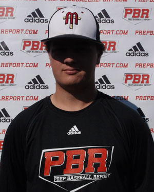 6-foot-1, 200-pound, RHH showed a strong exit velocity. Medium, physical build w/ strong lower half. Righty hits from a straight on, slightly crouched stance w/ back shoulder hand location and slight bat waggle. Shift of weight, leg kick and low hand load. Big bat speed. Power over average right now. Pull oriented approach. Defensively, provides a strong target for his pitchers w/ soft hands. Quiet movements behind the plate. Intriguing 2018 C follow.