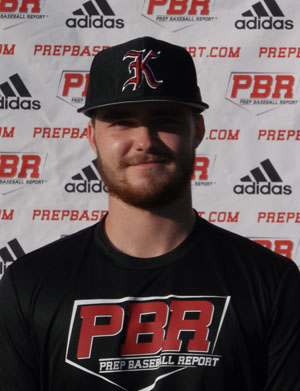 5-foot-9, 165-pound, RHH showed consistent barrel feel, finding a barrel in every at bat while collecting 3 hits in 4 at bats and showing zero swing and miss on 6 swings. Short, athletic frame w/ well-proportioned lean strength, some physical projection. Offensively, hits w/ a slightly open, very slightly crouched stance w/ quiet hands into short knee to knee leg kick and no hand load. Generates bat speed through the zone. Understands how to use his lower half to generate bat speed through the zone. Unique offensive set-up w/ beginning in near arm bar, but works for him. Quiet head w/ swing repeatability, barrel feel. Repeatable w/ lot of line drives to all fields. Projectable pull power. As a catcher, moves deliberately while presenting a quality low target under the hitter’s knees. Can get loud with movements as a catcher, as tendency to have his glove go out to the side as he moves. Strong fore-arms allows him to stick the baseball. As a thrower, shows solid footwork w/ carry to target arm strength, accurate.