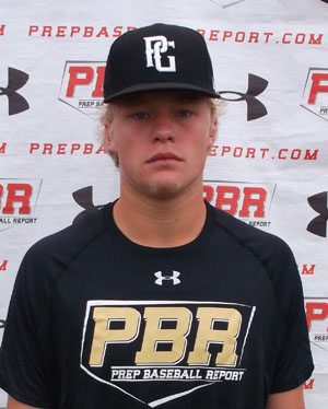 1/18/16 - 6-foot-3, 220-pound right-handed hitter with physical frame, hits from an athletic stance and uses a rhythmic stride and load to get himself started, lowers hands and gets them back to constitute his load, swing path stays on plane and through the ball, gets lower half involved, drifts forward on occasion, strong kid that was able to muster an 85 mph exit velocity off the tee and show a line drive approach with some very big power potential. Above average hands and fairly quick feet put him in a good position to get rid of the ball from behind the plate, uses a lower exchange than usual, gets the ball out of his hand quickly and showcased a 76 mph position velocity and 1.95-2.01 pop times from behind the plate. Also showed average hands and feet in the infield with 79 mph velocity across the diamond. Ran a 7.66 60-yard dash. Definitely a player to keep an eye on.