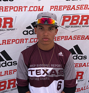 Texas Christian recruit, he stands at 5-foo-9, 170 pounds with lean strength. Stood out for his speed and strength. He reached on an error and fielder’s choice in his first two at-bats and then smacked an opposite field home run in his third.