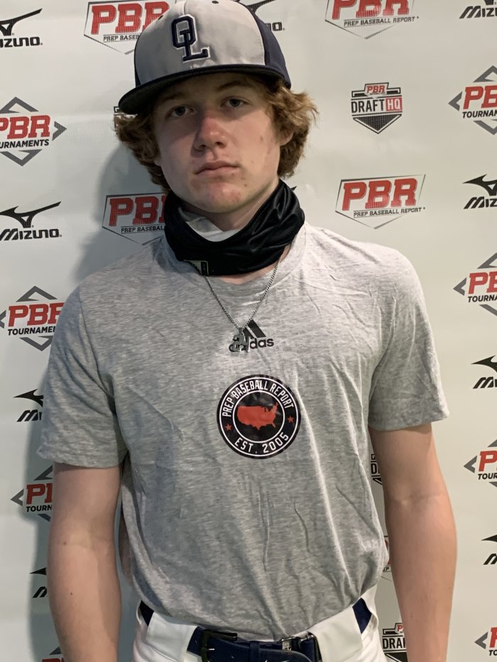 Benson is 5-10 with a lankier athletic frame that has plenty of projection left to it. He hits from the right side from an open balanced athletic stance, strides on line, smooth load back to a wrap. Hips rotate with some violence and he maintains good lower half balance. Hands stay inside, goes straight to the ball, slightly uphill line drive swing with some strength at contact point, showed a good approach working gap to gap with some gap power present and more coming in the future, exit velocity was 84. Behind the plate, clean exchange, throws from a three-quarters arm slot, short free arm action, position velocity was 67 and pop times 2.22-2.34. Receiving, he gets low with a wider base and works up to the ball, showed some sway receiving. Showed versatility working out in the infield as well. Ran a 4.56 home to first. On the mound, he throws from a high three-quarters arm slot, longer free arm action and normal effort to his delivery. Drop and drive delivery, shoulders are uphill and closed, lands on line with an athletic finish. Fastball was 66-70, with some late sink to it. Curveball was 60-63 with good armspeed and gradual 11/5 break to it, showing some shape.