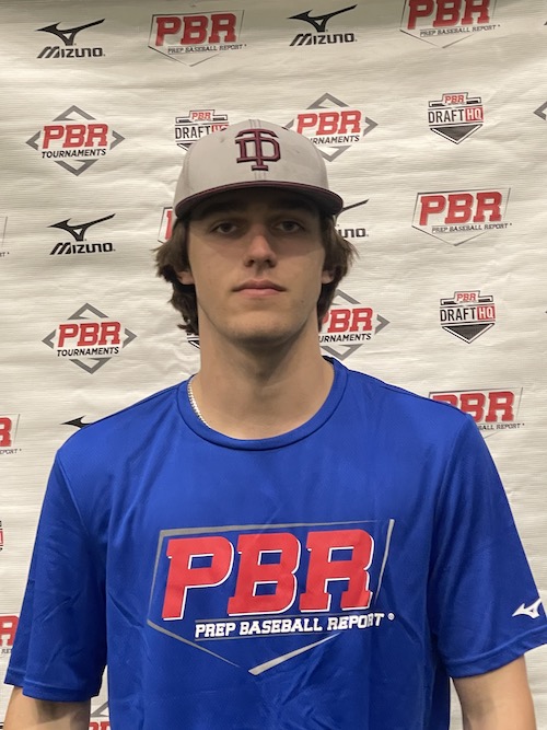 Spears is 6-3 with a lankier athletic 195 pound frame that has a lot of projection left to it. He hits from the right side from a taller slightly open balanced relaxed stance, low leg kick stride on line, short smooth load back. Hips rotate completely with some violence and he maintains good lower half balance. Hands stay inside, short to the ball, uphill swing path, some strength at contact, showed a pull approach, swing generates loft to pull side and power is present that way, exit velocity was 94. Behind the plate, quick clean exchange, throws from a three-quarters arm slot, short loose quick arm action, position velocity was 79 and pop times 2.00-2.09. Receiving, works from multiple stances, tracks ball down to up. Ran a 7.35 60 yard dash.