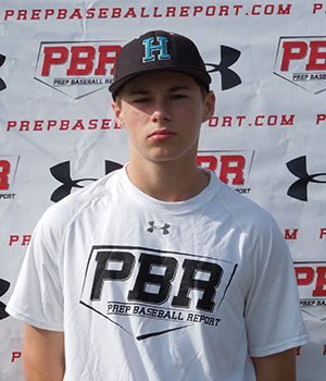 6.24.15 Hits from a tall, narrow stance that is balanced. Hands are preset back. No load back with an arm bar. Long stride that stays on line. Average lower drive to the baseball when he stays in his legs. Maintains balance throughout swing. Bat exit velocity of 82 mph. Good approach to the round. Swing path was long, but level. Line drive swing with gap-to-gap power potential. Rhythm is methodical at times. In the outfield, threw from a high ¾ arm slot that was long and stiff. Throws had some accuracy. Positional velocity of 72 mph. Hands were average.