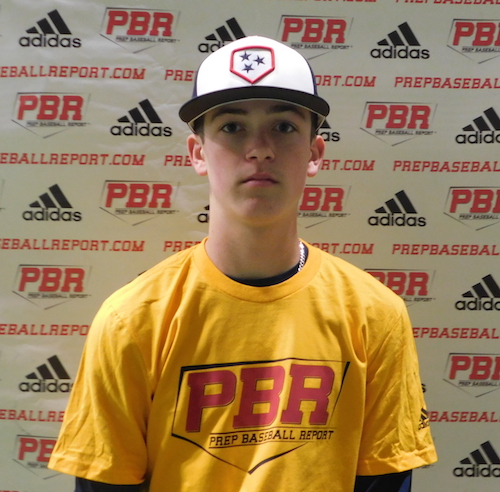 Gibson is 5-10 with a lankier athletic frame that has plenty of projection left to it. He hits from the right side from a slightly open balanced athletic stance, strides on line, smooth load back. Hips rotate completely with some violence and he maintains good lower half balance. Keeps hands inside, short and quick to ball. Slightly uphill swing path, line drive swing, showed a pull preference but also showed ability to work gap to gap, exit velocity was 81. In the infield, quick feet, rounds ball and fields with a good wide base and soft hands. Works through ball to a quick clean exchange, throws from a three-quarters arm slot with a short quick arm action, infield velocity was 83. On the mound, he throws from a three-quarters arm slot with a short quick arm action, normal effort to his delivery. Shoulders are level and closed, lands on line with a fall off finish. Fastball 81-82, touching 83, with some late run. Curveball had some armspeed and sharp 11/5 break.