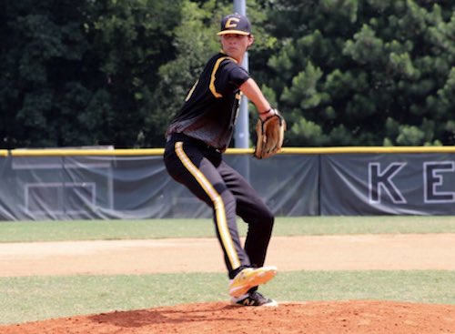 Long limbed frame at 6-foot-5. Room for, and needs to add strength to his frame. Quick compact, no wasted movement delivery. It’s a short and quick step to lift and attack. Longer free arm action throwing from a lower angle. Regular effort and fast arm speed; Fastball topped out at 90 mph on the day and sat 86-89. Repeats delivery well, sometimes showed trouble with consistency in release point, but that is being picky. Also could get better lower half involvement, which you would think equates into more velo as well. Showed very good command on the mound, and room to be even better at the next level. Feel for both sides of the plate. Had a tendency to let balls rip up and arm side when he missed. Fastball has consistent two plane movement when working down. Breaking ball is tight with shorter 1/7 action up to 75 mph. Has potential to be a better pitch at the next level. Did not need a third pitch on the day and did not see one. Love the arm slot, body, and life on the pitches. Want to see him strengthen his frame more for durability down the road.
