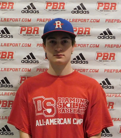 Flicker is 5-11 with a lankier athletic frame that has plenty of projection left to it. He hits from the left side from a tall balanced stance, low leg kick stride on line, loads back to a wrap. Hips rotate completely and he maintains good lower half balance. Hands stay inside, uphill line drive swing with strength at contact and extension through the ball, exit velocity of 89. In the infield, gets behind the ball and fields with a wider base and average hands, works through the ball to a clean exchange, throws from a high three-quarters arm slot, position velocity was 64. Ran a 4.59 home to first.