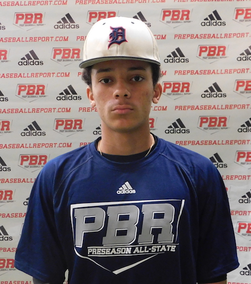 McNeil is a recent Virginia Tech commit and is 6-2 with a lanky frame that has a lot of projection left to it. He hits from the right side from a slightly open balanced athletic stance. Short stride on line, smooth load back, rhythm to his swing, explosive hips rotate completely while he maintains balance. Short to ball with some bat speed, extension through the baseball and some whip to his bat, good barrel awareness, line drive swing with an uphill finish, showed good approach using whole field, exit velocity was 84. In the outfield, gets behind ball and plays through it to exchange, fields with above average hands. Clean exchange throws from a three-quarters arm slot with a loose quick arm and some carry on his ball, outfield velocity was 87. Has speed, ran a 4.21 home to first. On the mound throws from a high three-quarters arm slot with a short, lightning quick arm action and normal effort. Shoulders close off and he lands slightly closed with an athletic finish. Fastball was 79-82, touching 84, with downward plane and some late run to it. Curveball was 69-71 with good armspeed and hard 10/4 break.