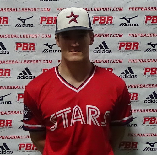 Hand is uncommitted and is 6-1 with a strong athletic frame. Has straight-line speed and is athletic and moved well taking ground balls and crow hopping to throw. Arm has strength, touching 90 on his throws. Simple swing with an easy set-up, strides on line, smooth load back to a slight wrap. Hips explode violently and rotate completely and he maintains some lower half balance throughout his swing. Hands stay inside, quick to the ball with strength at contact and extension through the ball. Slightly uphill swing path, shows a pull preference with real power and loft in his swing that way, shows extra base power to all fields.