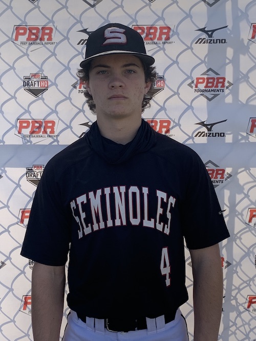 5-foot-10, 165-pound proportional athletic build. Fluid confident in the box, the right-handed hitter had a max exit velocity of 82 mph. (63.7 mph bat speed average). (20.1 mph hand speed average). Starts in a balanced quiet stance with a quick active load, then uses a quick small leg kick. Bat speed is quick efficient, has a short simple swing plane and balanced finish. Found lots of barrels with loud contact. Aggressive gap to gap approach. Smooth athletic while in the infield, registered his best throw across the diamond at 80 mph; has a clean natural exchange, sure consistent hands, and athletic in control feet. Laterally, movements were athletic and fielded the ball out front. Showed consistent accuracy to the bag with a short arm action and an-over-the-top slot. The athletic recruit showcased his speed with a sub-seven 60 time of 6.69.