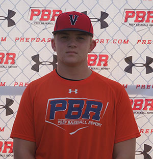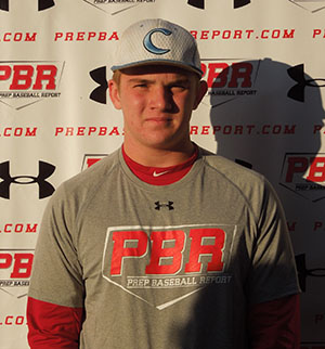 7.14.15 Hit from a balance stance that was tall. Had a smooth load back with a slight arm bar. Took a short stride that was on line. Showed good balance throughout the swing with a good lower half. Had a good approach during around with a good rhythm. Bat path was short. When rhythm was late, casted hands. Had a line drive/gap to gap swing. Had average bat speed with an exit velocity of 78 mph. Behind the plate, threw from a high three-quarter arm slot with a short arm action. Throws were accurate and had carry. Showed soft hands when receiving. Fluid footwork to go along with quick and clean exchanges. Moves well behind the plate. Was on his heels at times. Had a positional velocity of 78 mph. Pot times were 1.89- 2.02.